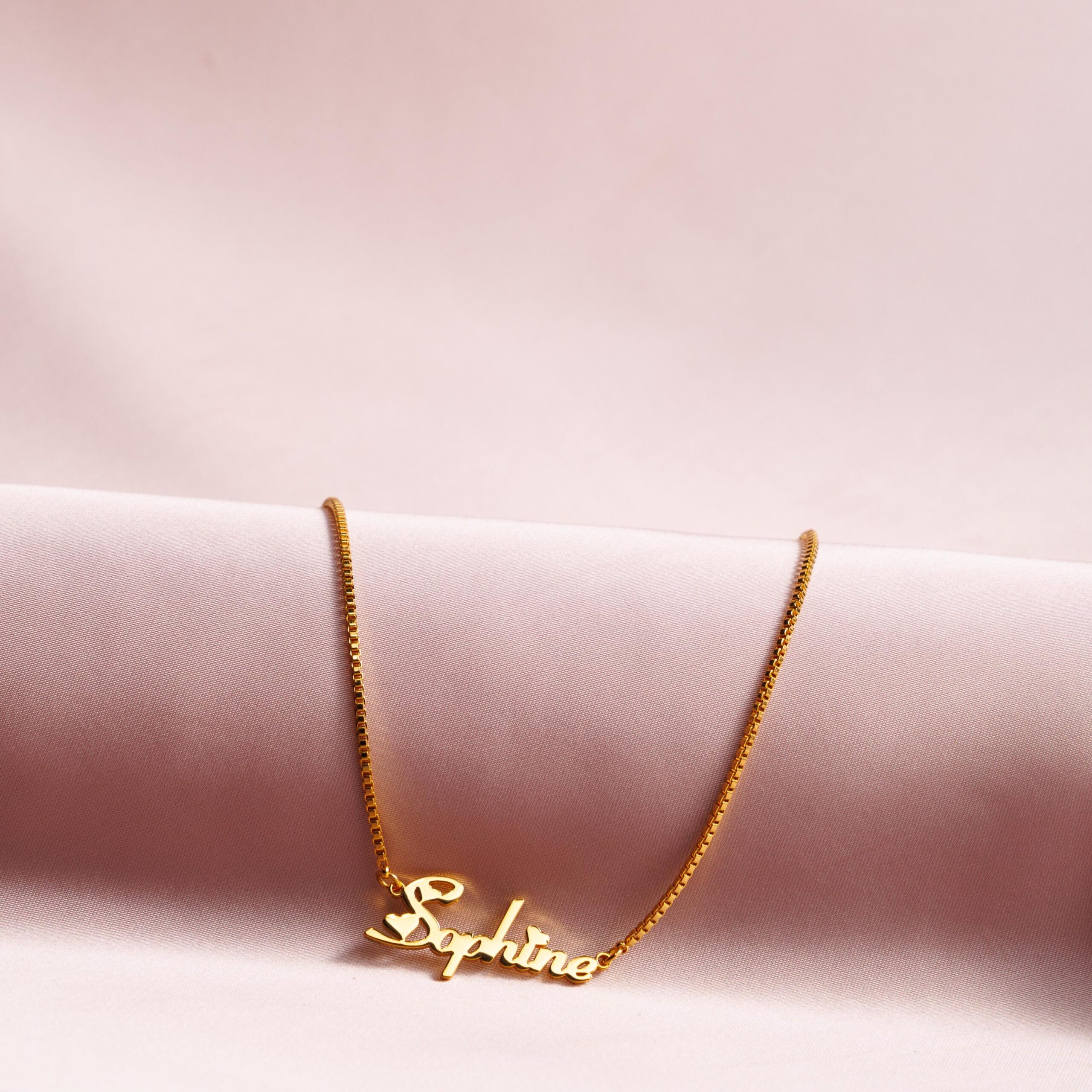 Our Personalised Name Necklace with Heart is more than just jewellery—it’s a piece of your story. Crafted from high-quality brass and available in luxurious 14k gold plating, this dainty necklace features a custom name or word paired with a small heart charm, symbolising love, care, and connection. It’s a timeless piece for women, kids, and anyone who wants to carry a meaningful name or word close to their heart.