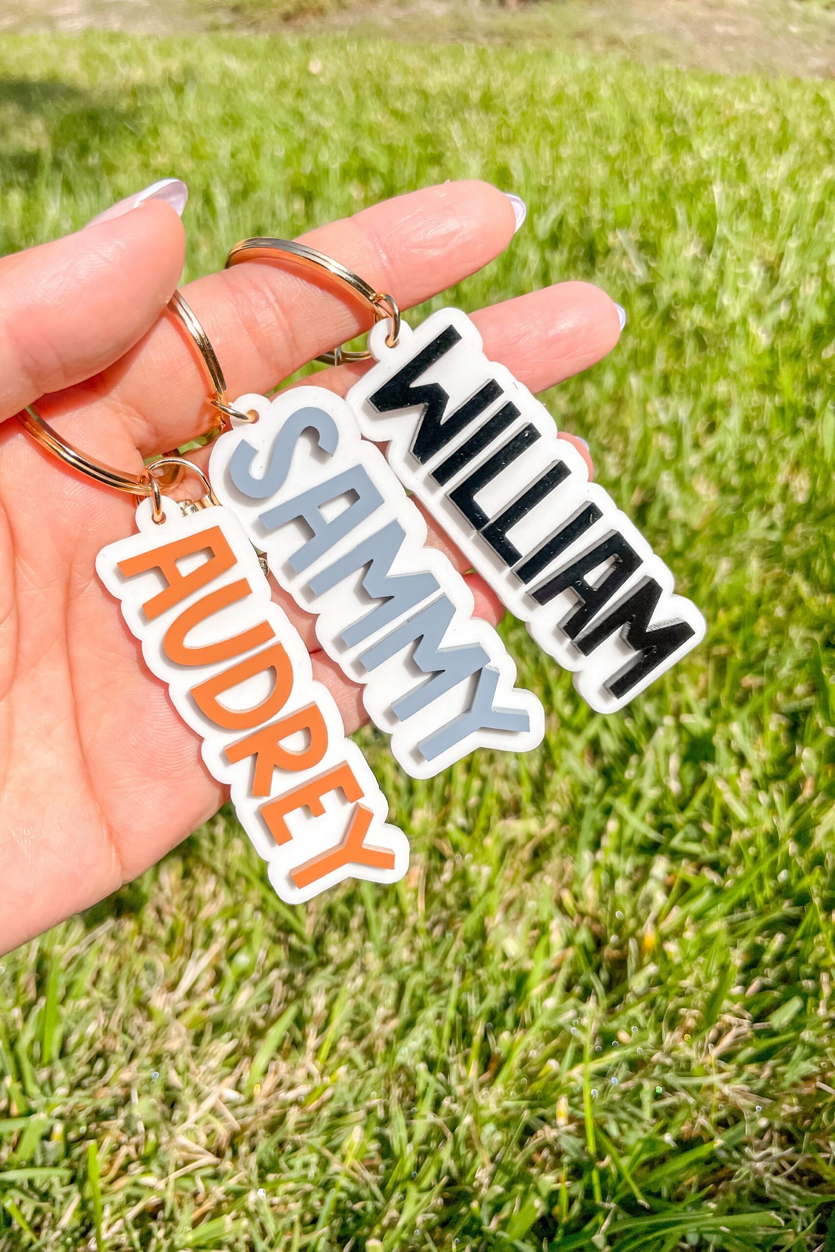 Personalized Acrylic Keychain, Acrylic Name Tag, Backpack Name Tag, Diaper Bag, Custom Name Keychains, Lunchbox Name Tag, Retro Name Keep your style bold and your belongings safe with our colorful, custom acrylic name tags. Ideal for all ages and all occasions.
