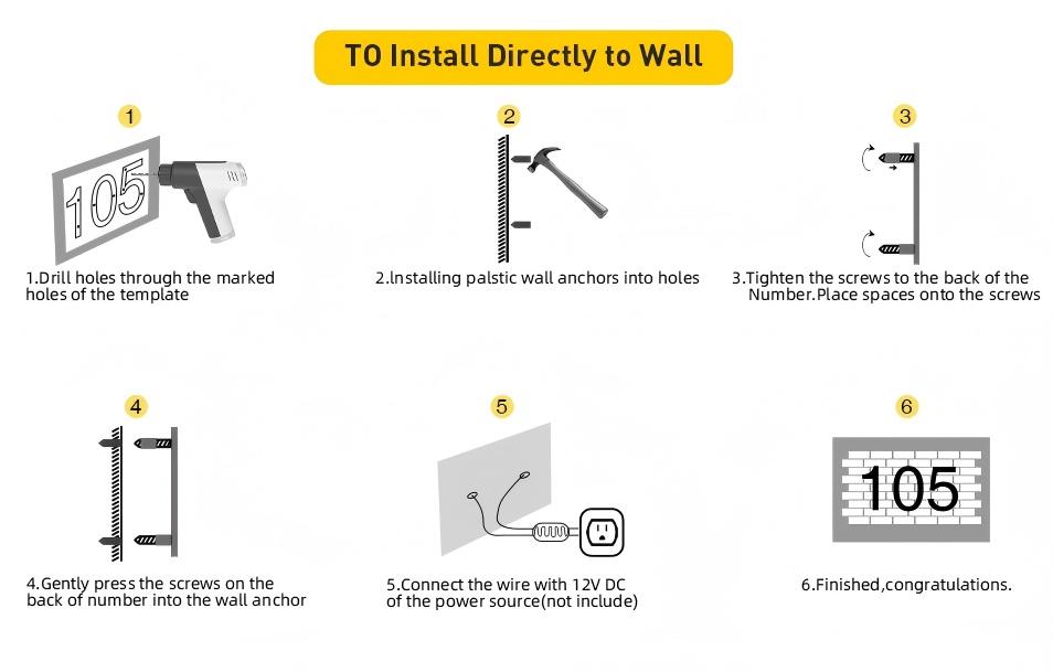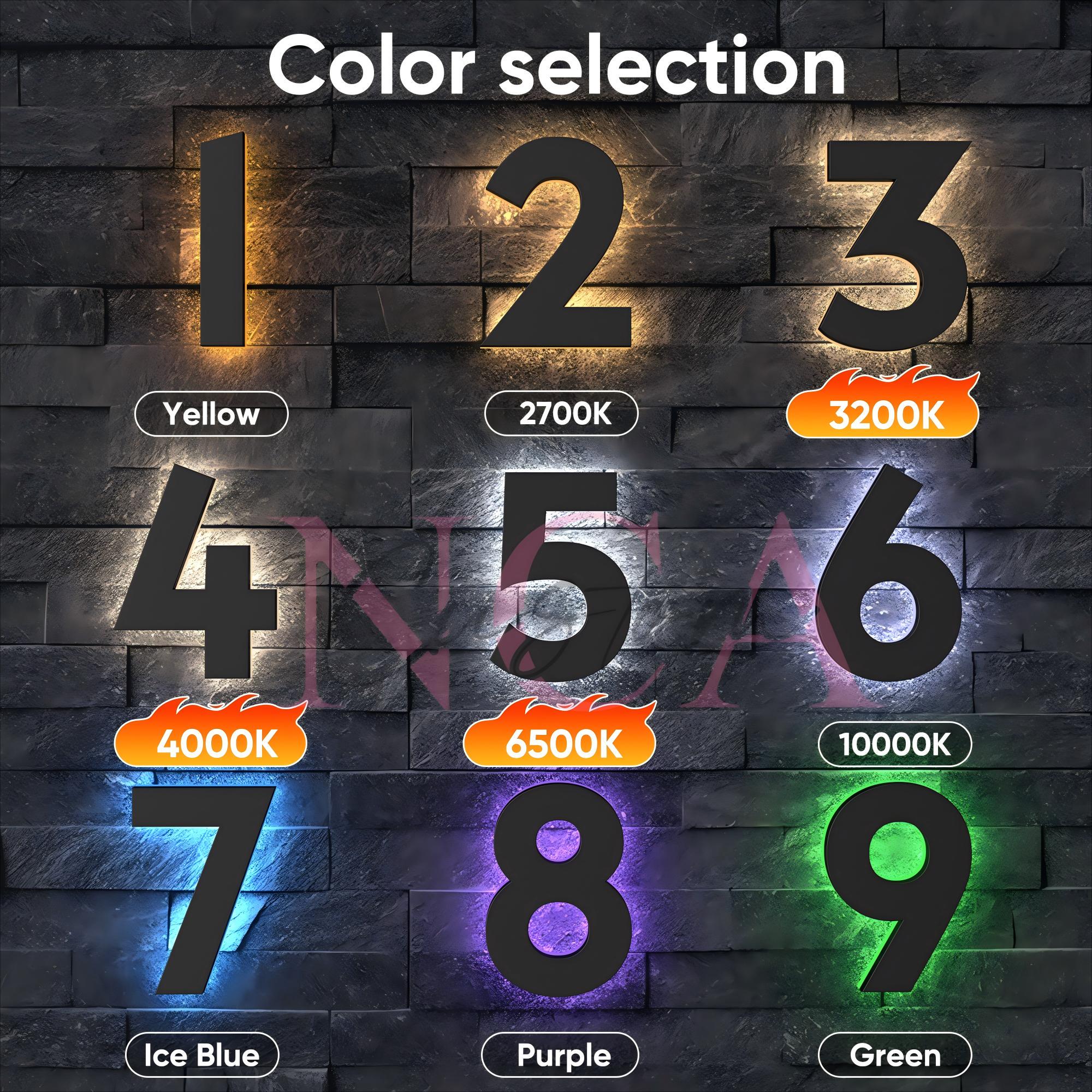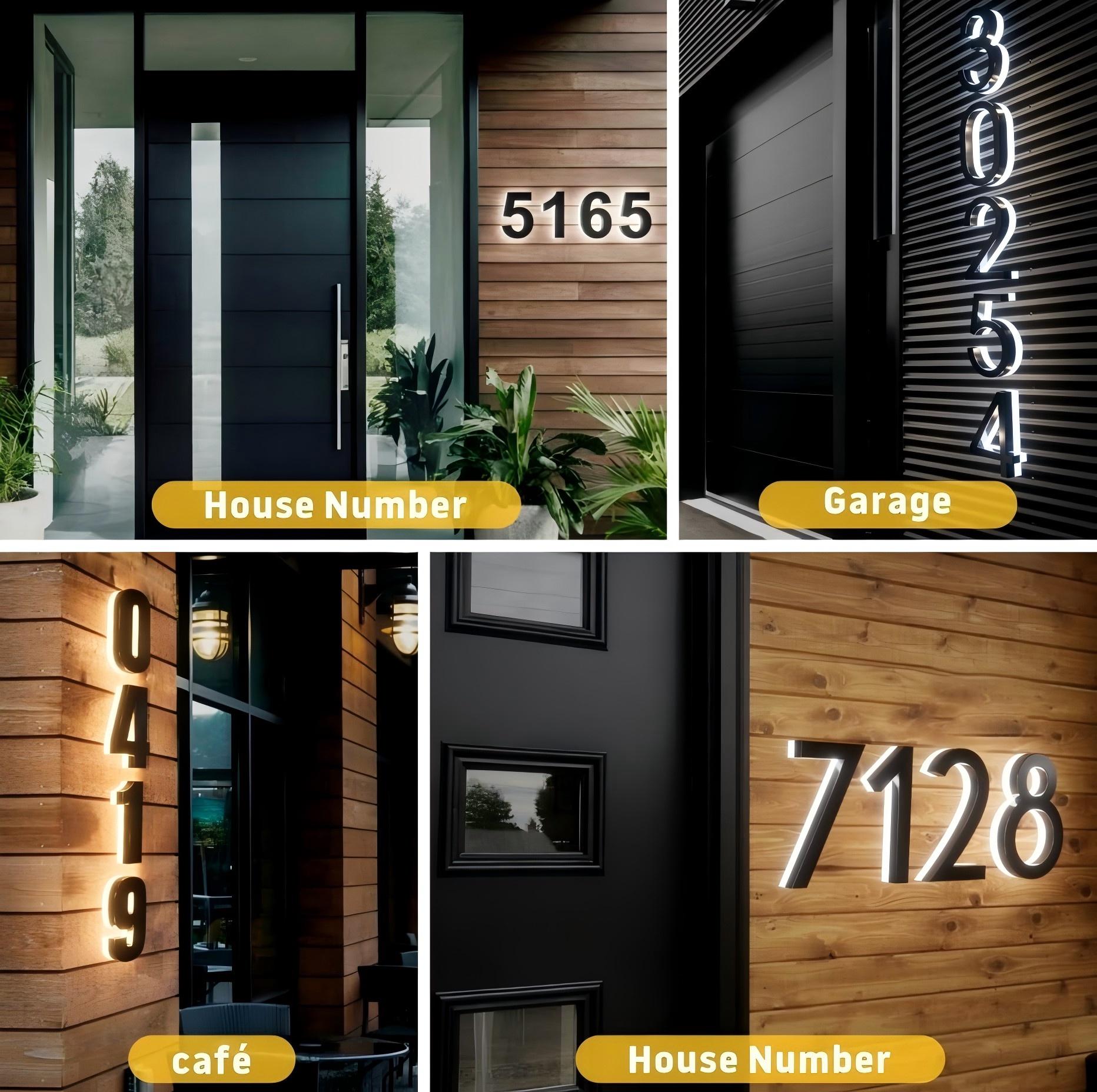 • 🔆 LED Backlit Illumination A warm or cool glow (depending on your choice) lights up your personalized numbers, ensuring excellent nighttime visibility from the street—ideal for guests, couriers, emergency services, and visitors.