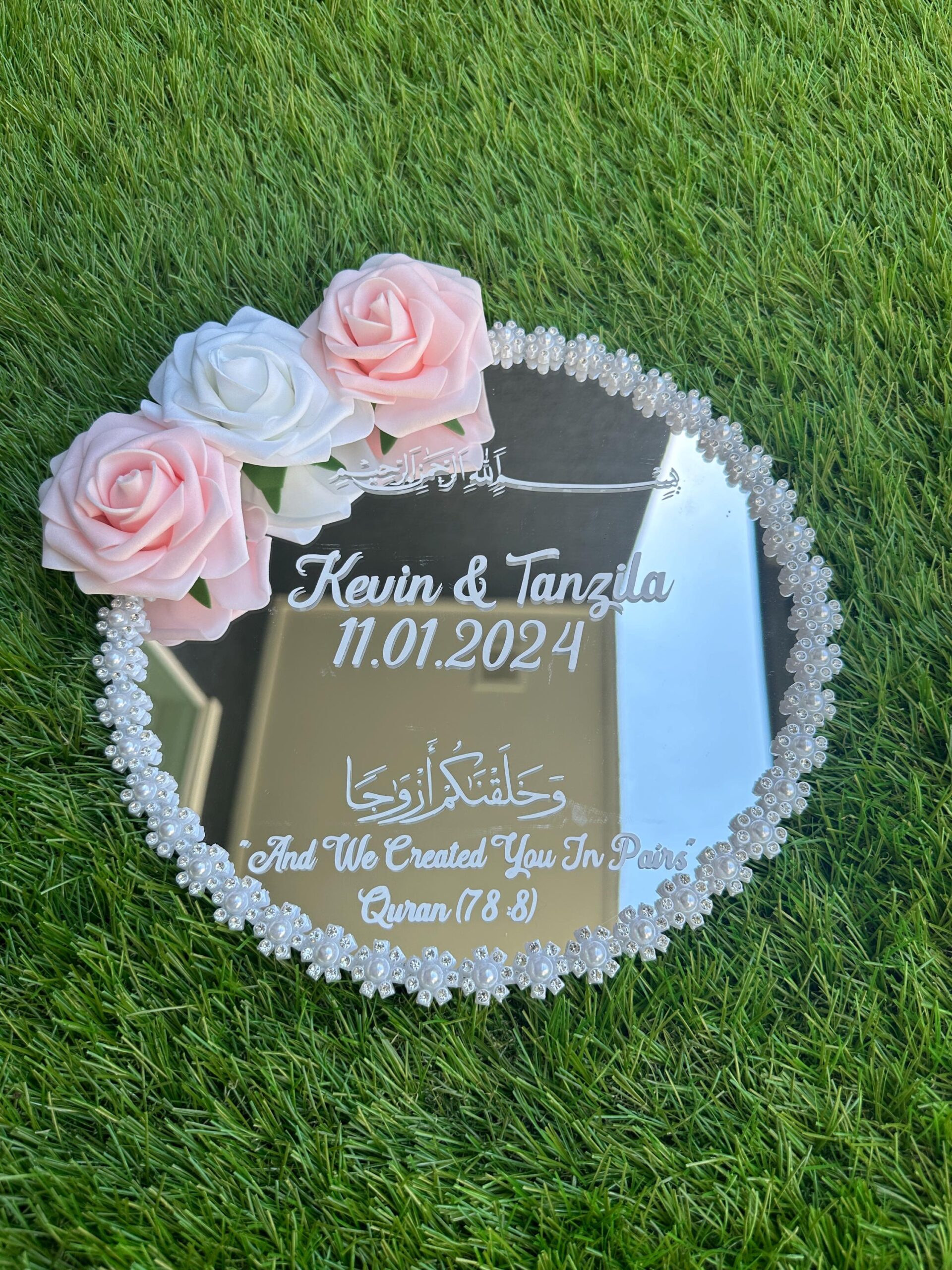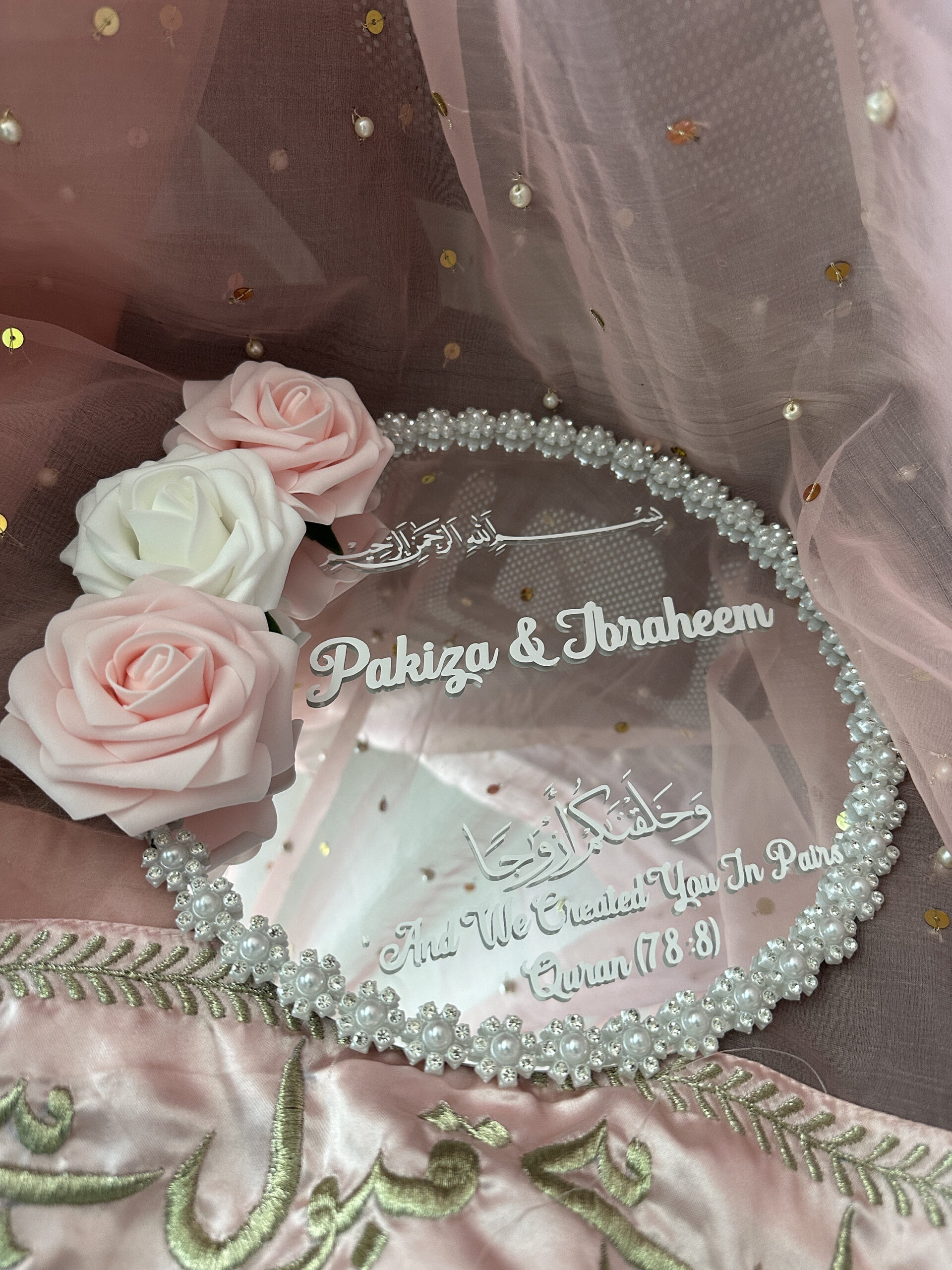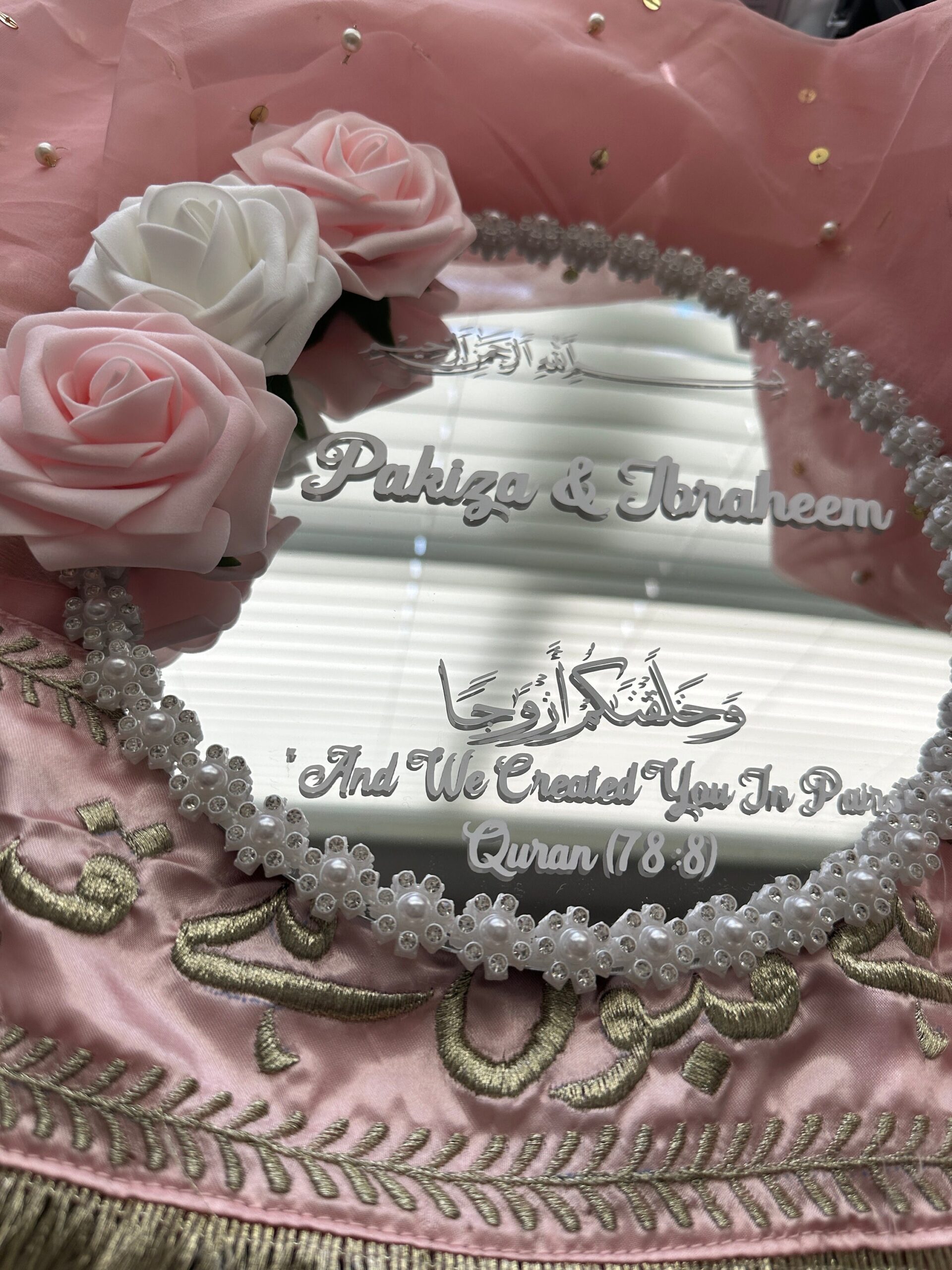 In Islam, a Nikkah is a sacred, soul-binding moment. Every part of the ceremony should feel intentional, symbolic, and beautiful. Our Personalized Mirror Nikkah Ring Tray isn’t just functional—it’s part of the story.