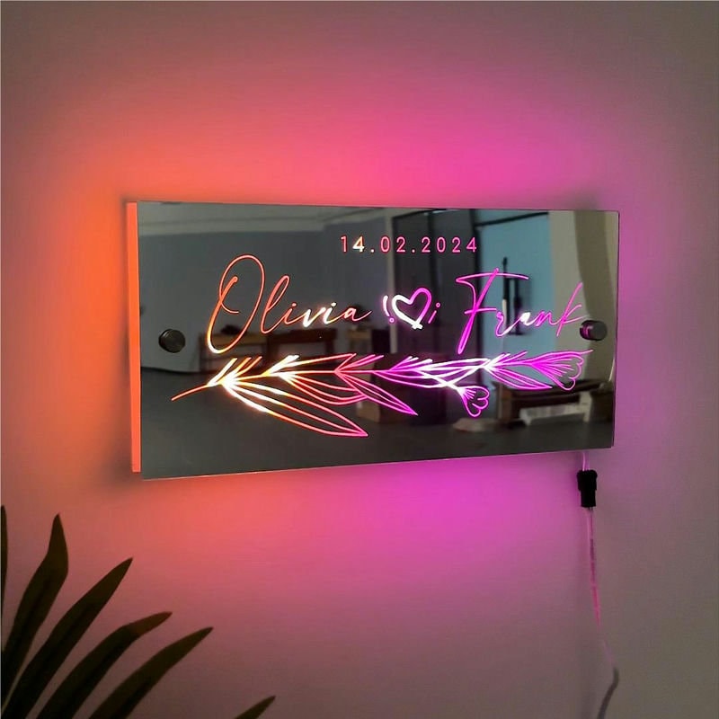 Imagine walking into a softly lit room and seeing your names or wedding date glowing on a beautiful mirrored surface. It’s not just décor—it’s your love, illuminated.