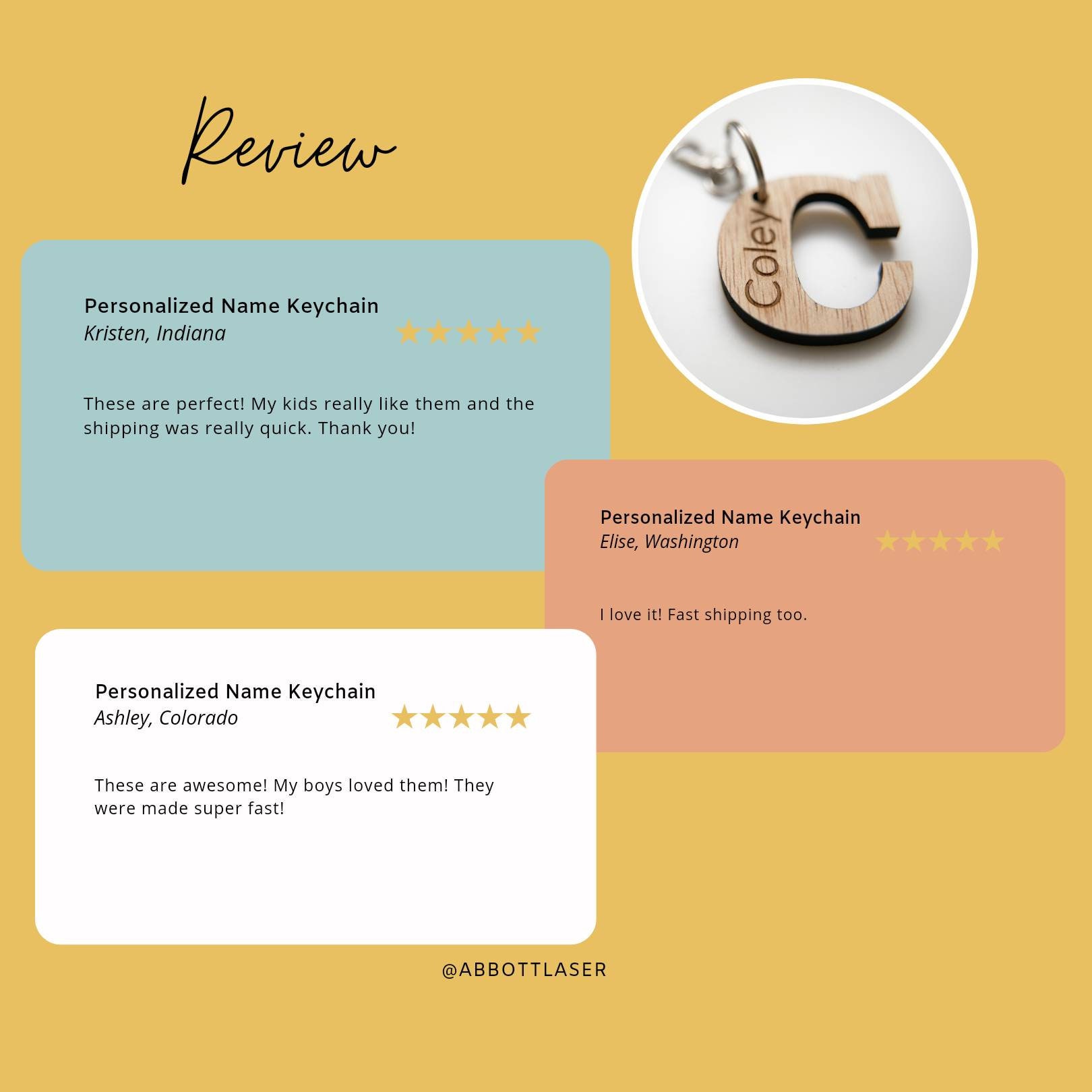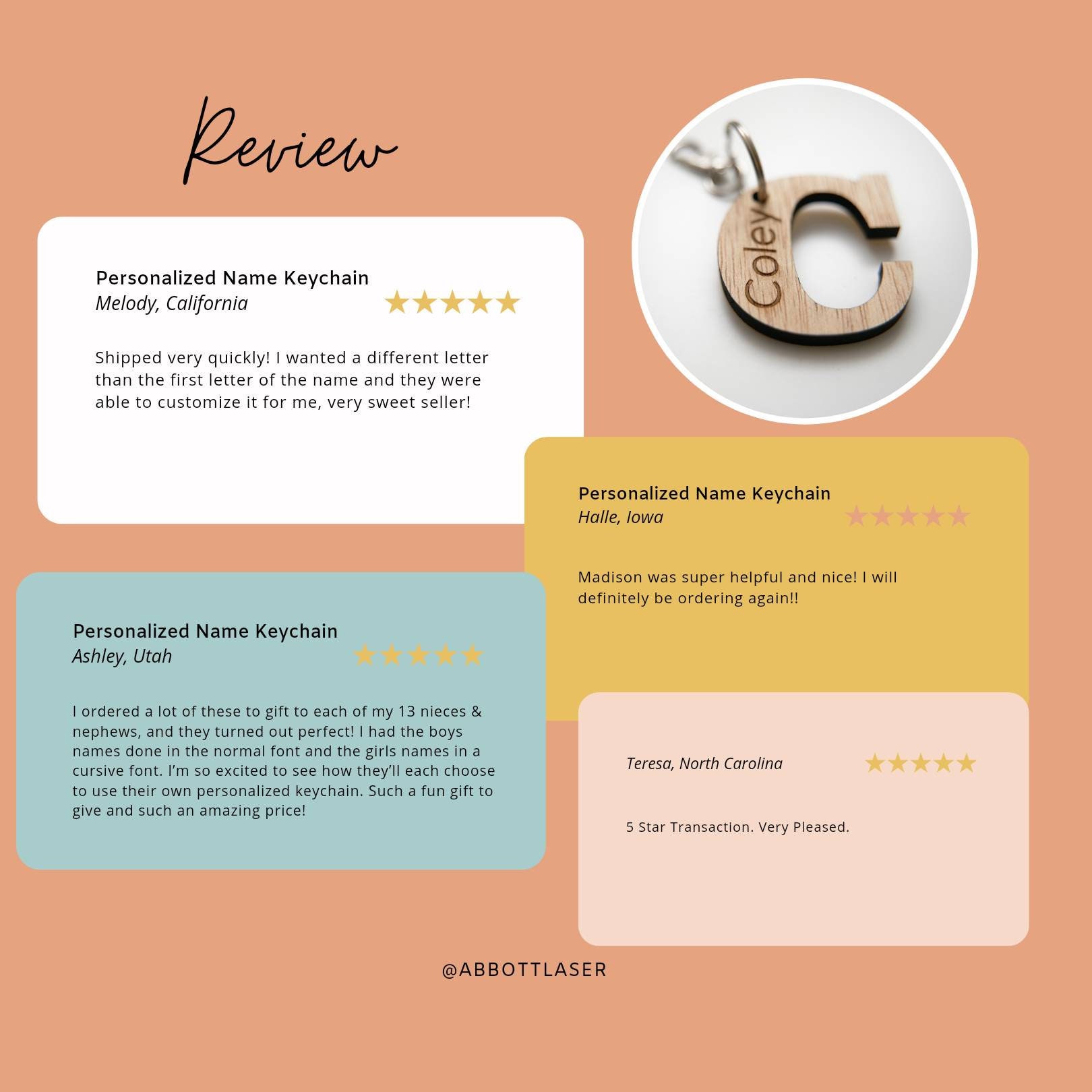 Perfect for a backpack tag or a lanyard keychain. The name can be personalized and matched with the large letter. The keychain has a clasp for easy attachment! Thank you so much for supporting our family’s small business! Your satisfaction is our number one priority, so please message us with any questions or concerns. Abbott Laser products are all designed and created in our home! We love bringing unique ideas to life, so if you have something special in mind, let us know and we’ll create a custom order that’s tailored just for you.