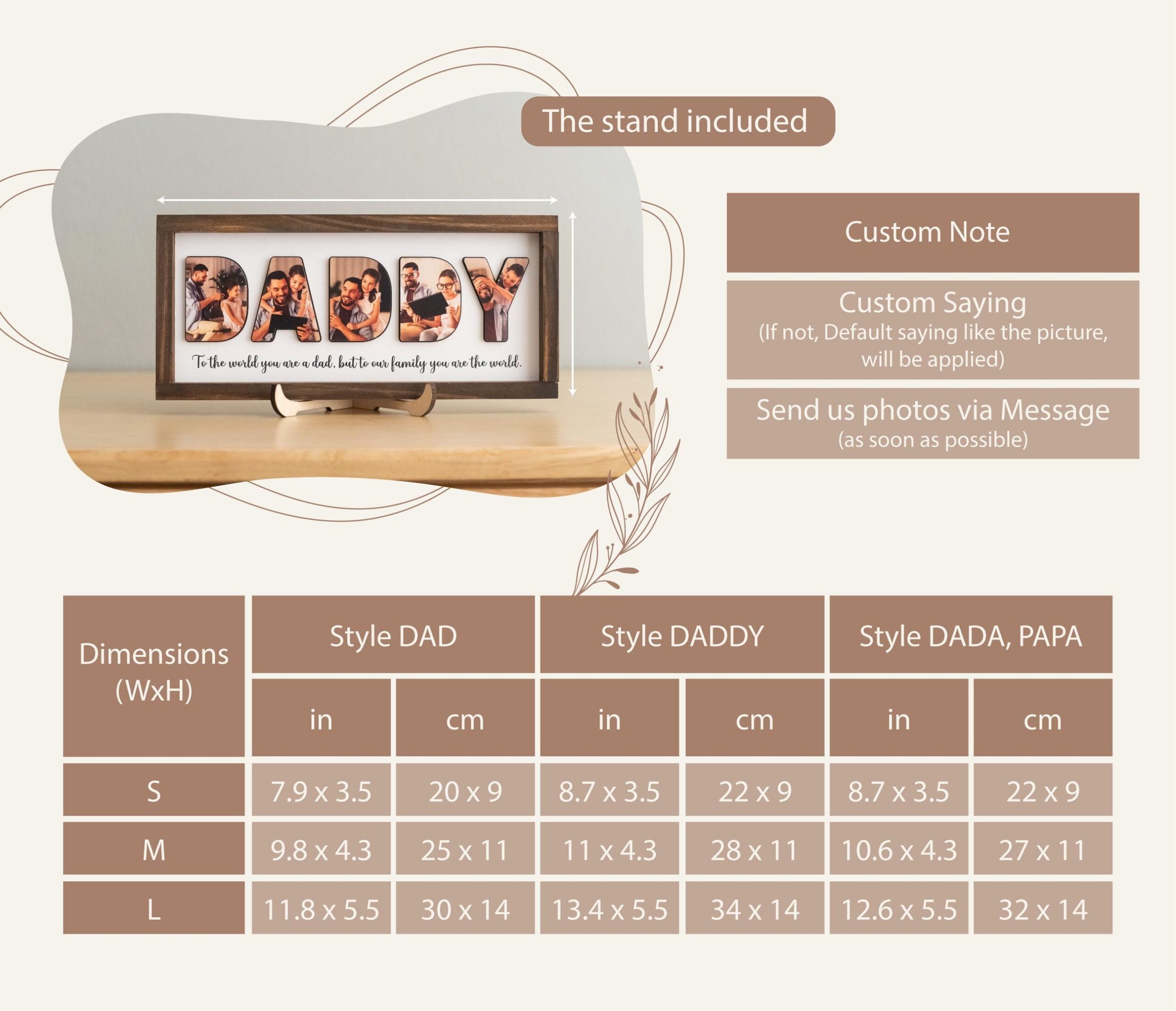 - Multiple Photo Slots: Display multiple pictures of Dad and his loved ones on the custom wooden sign, creating a collage of memories.