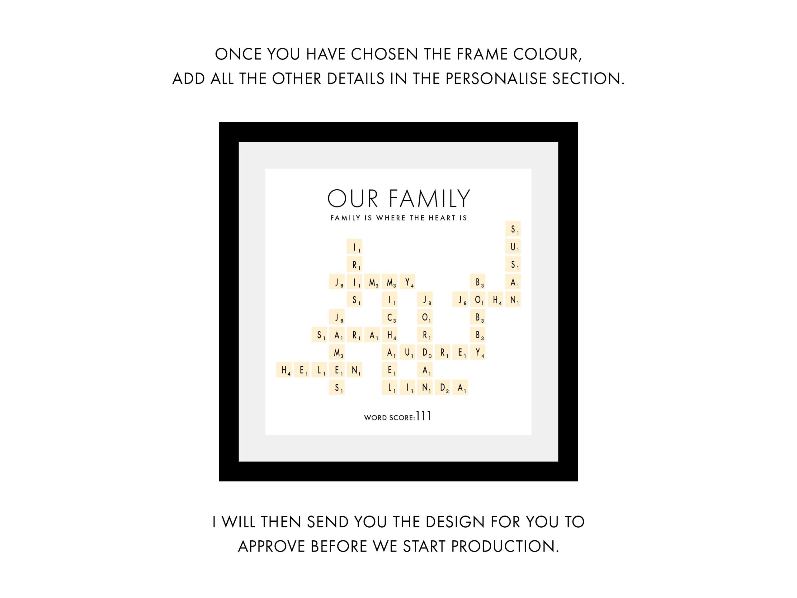 - Handcrafted Quality: Each Scrabble family names frame is carefully made with attention to detail, ensuring a beautiful and lasting piece for your home.